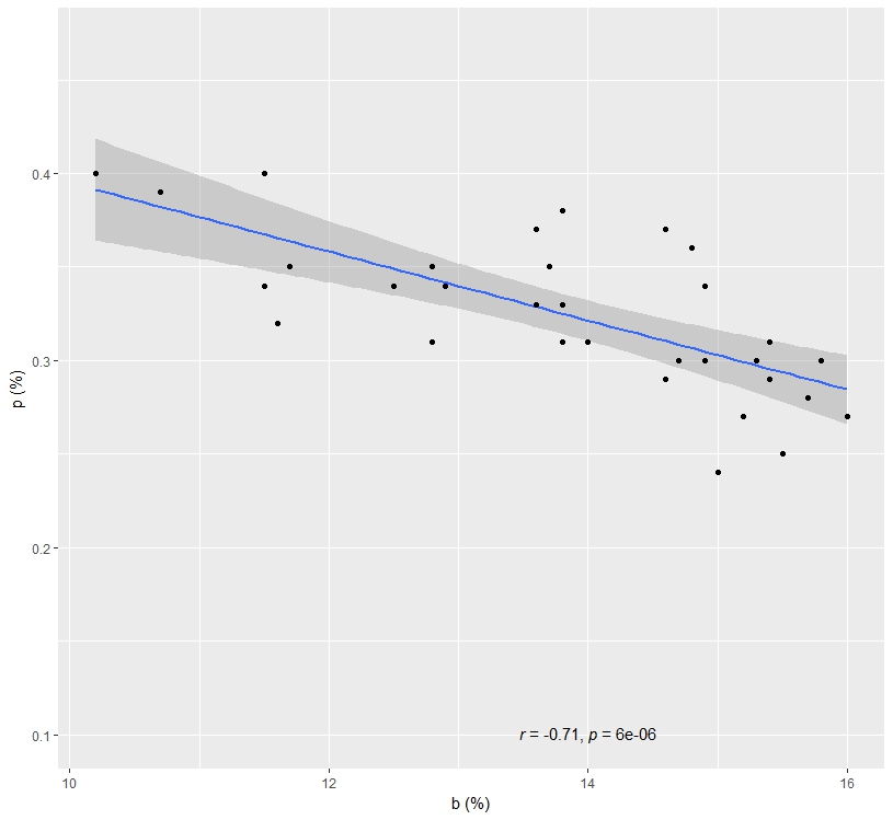 pvalue = format(summary(m)$coefficients[2,4], digits = 3)))然后你改变你在你的情节中的点,就在你第一幅图的另一个块的下面。这里的x和y指的是文本的位置,所以在这些地方玩,直到你的文本看起来还好为止。