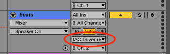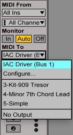 3)现在,在您想要发送便条的Ableton midi轨道上,选择“IAC驱动器”作为midi输出。