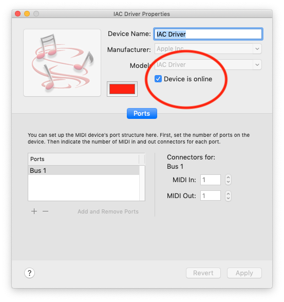 4)现在'IAC驱动程序(总线1)‘应该通过显示为Midi输入。