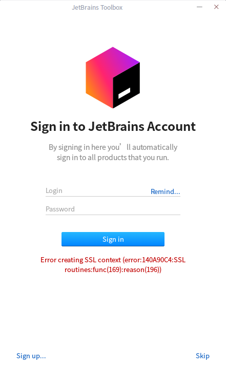 我刚刚下载了适用于linux的Jetbrains工具箱,并在Deepin Linux 15.4中插入,但当我打开工具箱并试图登录时,发生了一些错误,错误消息如下: