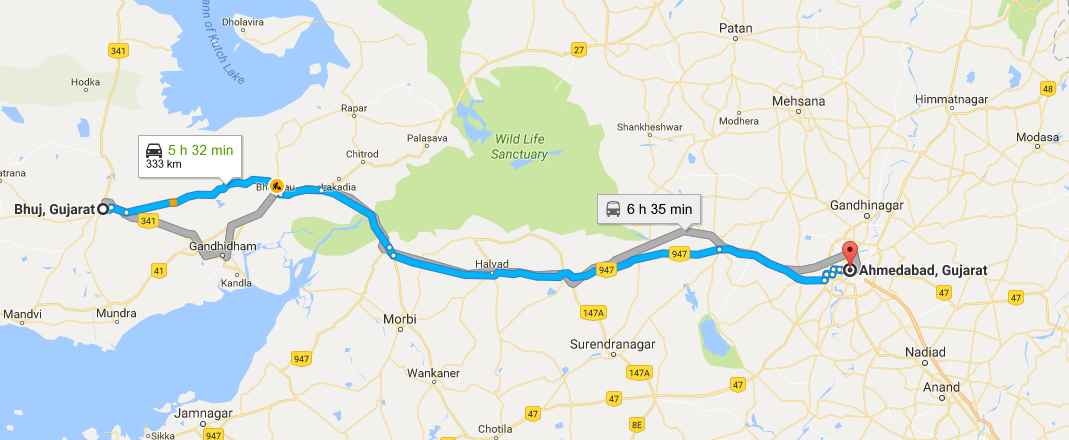 ,但在这种情况下,它从布吉到艾哈迈达巴德的工作
