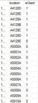 我有一个查询,得到一组显示货架位置和是否使用货架的结果。货架布局类似于:"A1XXX01,A1XXX02“,然后移动到A2等等。下面的屏幕截图显示了我正在返回的结果集,我希望以如下方式对数据进行排序: