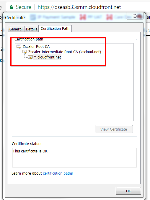 问题是zscaler作为中间人在您的组织中执行ssl检查(请参阅https://support.zscaler.com/hc/en-us/articles/205059995-How-does-Zscaler-protect-SSL-traffic-)。