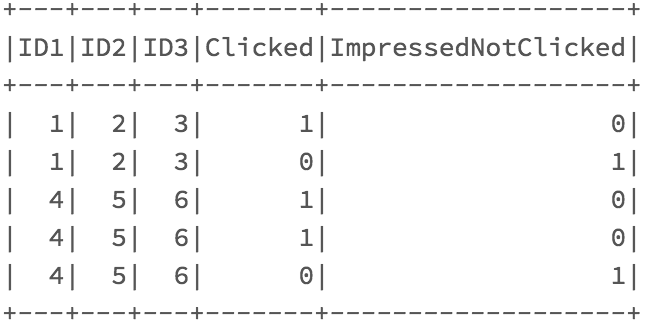 df_fin = df_new.withColumn('Clicked', toClicks('Impressed','Clicks')).select('ID1','ID2','ID3','Clicked')