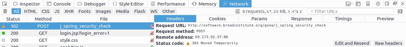 另一个问题是:您的post请求应该在这里传递数据:http://software.broadinstitute.org/gsea/j_spring_security_check