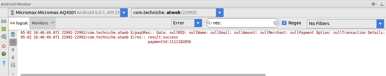 请参阅图片附加的payUMoney响应,我已经打印了Logcat。
