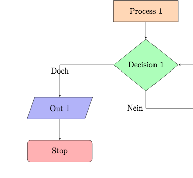 \draw [arrow](dec1) -| node[anchor=north, left] {Doch} (out1);或