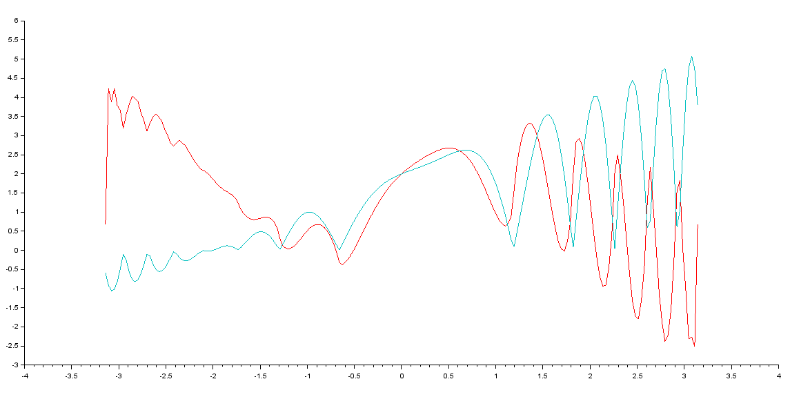 显然,趋势是可以的,但这一时期的开始和结束是错误的(反转?)您在Scilab代码中看到什么问题了吗?是什么原因造成了这个问题?在函数解决方案(X)中,sin/cos中的值?,我应该提供一个,十进制的值并检查那里的误算吗?