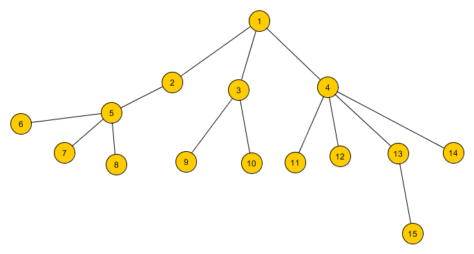 例如,对于在问题中发布的树,节点1的信息应该是:-1 2 3 4,节点2的信息是:1 5,等等。