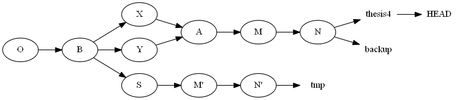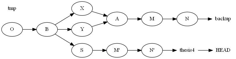 ...我希望重写历史,使A的状态完全保持不变,并有效地销毁中间表示形式X和Y,因此产生的历史如下所示
