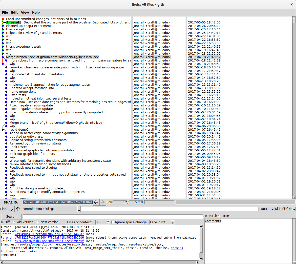 在这一条的底部,我从师父那里分道扬镳。自从我开始这个分支以来,主人已经改变了一点,但是变化是不相交的,所以合并应该是小菜一碟。我通常的工作流程是重新建立在主人的基础上,然后压缩wip提交。