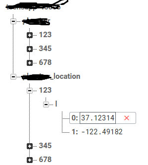 因此,当我单击菜单栏时,将执行addGeoQueryEventListener,执行onGeoQueryReady方法。但是从来没有执行过onKeyEntered方法。正如您在附件中所看到的,我的位置与顶层节点位于同一个节点中。我还在DB引用中包含了子路径"xxx_location“。下面是我的API版本。