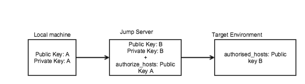 我有一个服务器(S),它只能从跳转服务器(J)到达。我的公钥已经复制到J,并且有一组不同的公钥/私钥,它被复制到S,以允许从J到S的身份验证。本地机器上的密钥对与J上的密钥对不同。