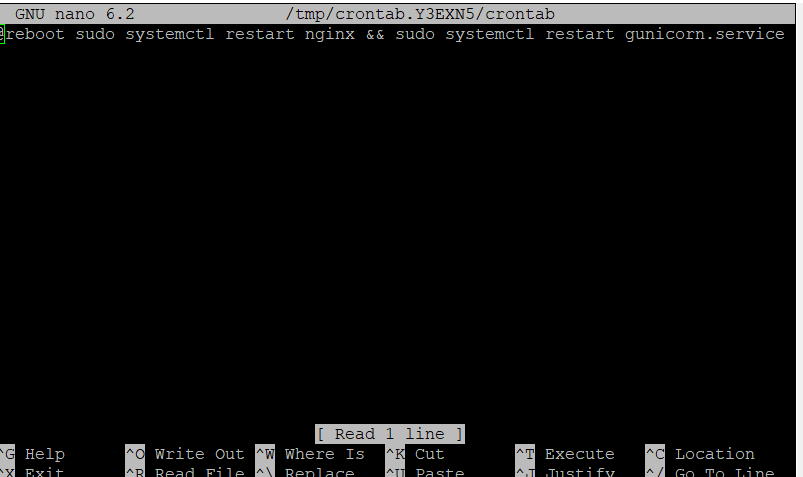 @reboot sudo systemctl restart nginx && sudo systemctl restart gunicorn.service