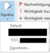 Outlook显示添加的签名(TEST_.)但不承认它为默认签名。相反,它只是删除了以前的默认签名,现在没有了。