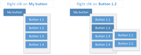 我曾尝试使用ContextMenus来完成这项工作,但是当我右键单击Button 1.x时,什么也不会发生。不可能使用嵌套的ContextMenus吗?还有其他的可能性吗?