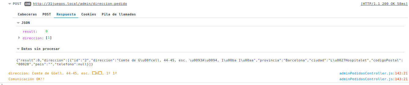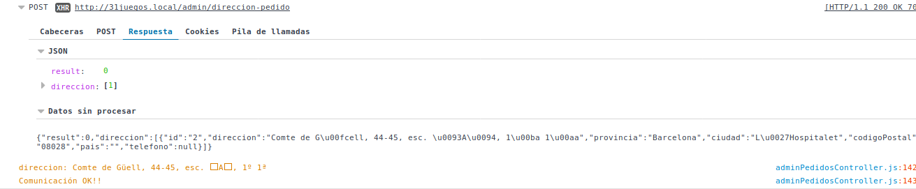 我们将返回id = 2的行。在字段"direccion“中,我们得到了这个字符"ü”。服务器对请求的响应而不对地址进行编码,我得到: