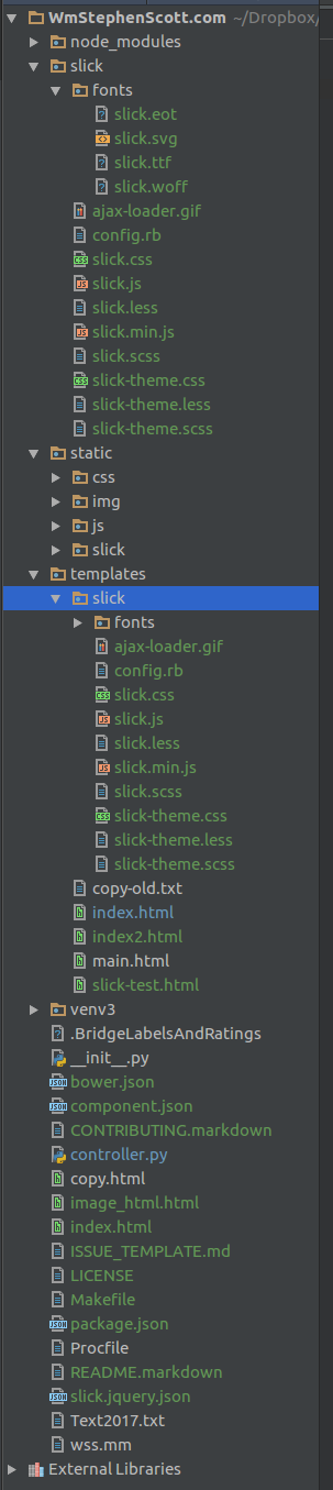 <link rel="stylesheet" type="text/css" href="/static/slick/slick.css">添加静态目录。烧瓶文件需要放在静态目录中,我需要在链接中反映这一变化。
