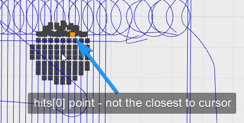 首先要注意的是,hits[].points直接返回光标下的一个点,但它不会“快速”到点。
