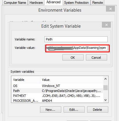 npm install -g vue编辑系统环境变量,并输入以下路径,如果仍然有问题,只需尝试在系统用户变量中添加路径