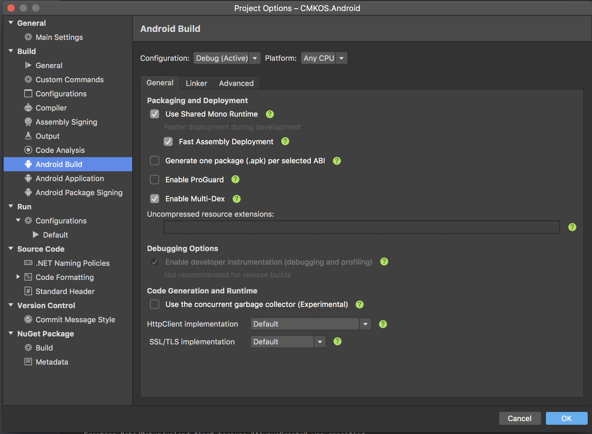 2)确保您在安卓应用程序中启用了Multidex选项!如果将.csprj文件设置为true,请查看Multidex文件(在我的示例中,即使启用了Multidex也没有)