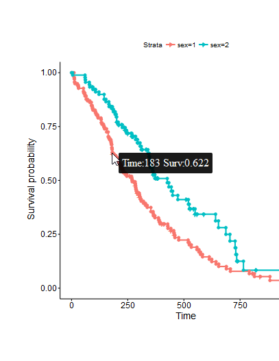 dat1$tooltip <- paste0("Time:", dat1$x, " Surv:", round(dat1$y,2) )但是将值设置为3会使它们消失。我不能完全确定这一点,因为工具提示是,非常微妙的,而且似乎只有当鼠标处于正确的位置时才出现。这可能是因为它们在一定长度内都被抑制了。