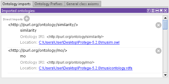 我使用的是Proge5.2.0版本,我试图从http://purl.org/ontology/mo/中添加音乐本体。我已经在我的计算机上下载了rdfs,当我试图导入我的本体上的文件时,加载它需要花费很长时间。