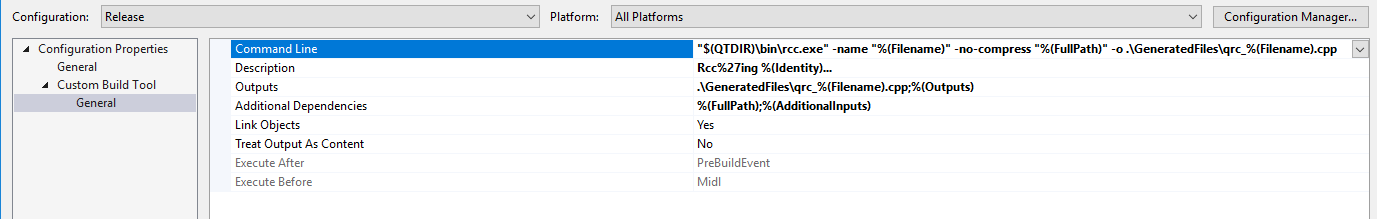 }该工具将qrc文件作为第一个参数。因此,我只是将此工具添加为预构建事件,如果资源发生任何更改,则会触及qrc文件,并调用它的正常构建命令。