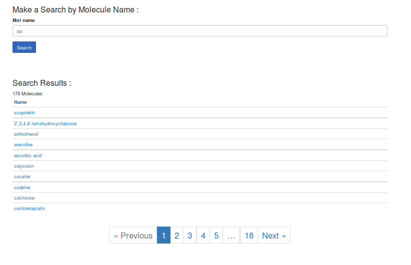 我有一个搜索栏来查找分子的名字,然后显示所有包含这个名字的分子,就在同一页的搜索栏下面。