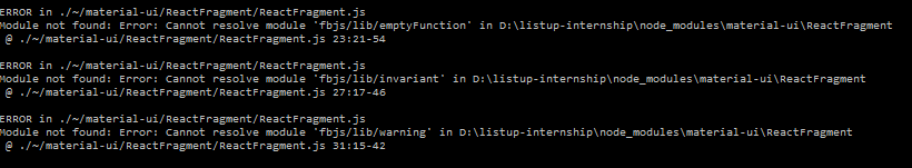 看起来他们错过了一个依赖项(似乎是删除 in master)。希望下次更新material-ui时,我们将能够消除对fbjs的显式依赖,并继续前进。