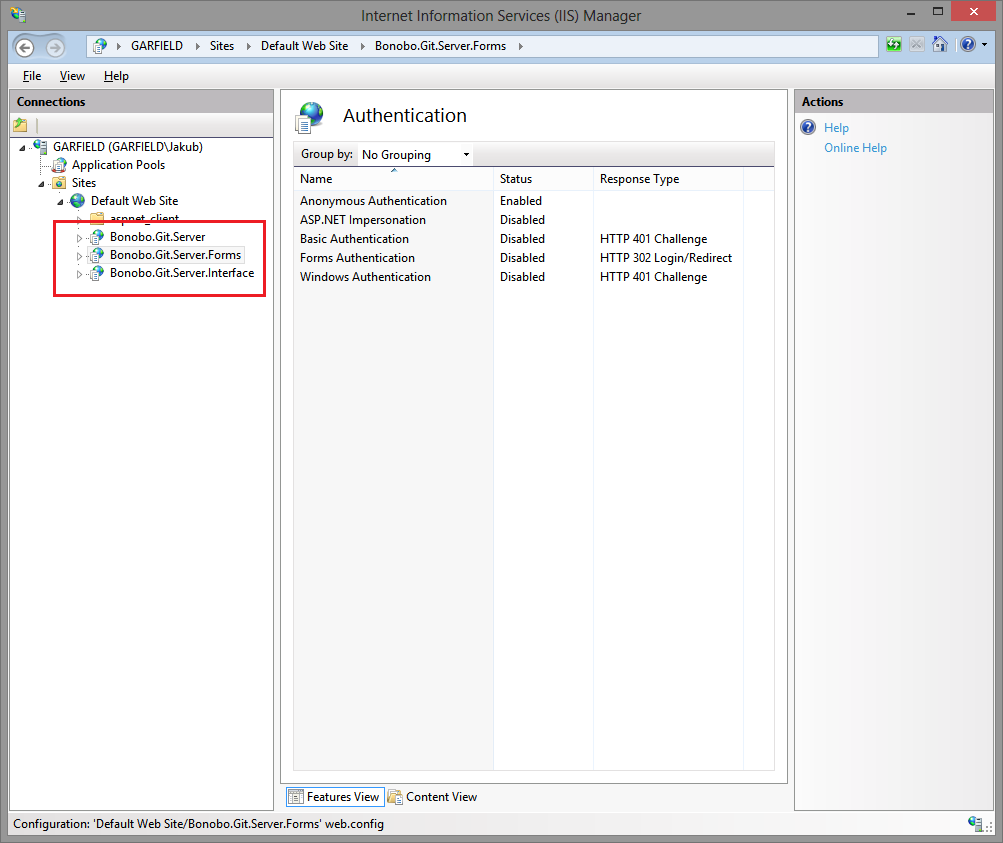 将Bonobo.Git.Server转换为IIS中的应用程序