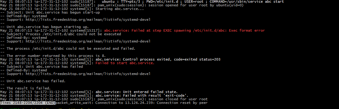 您已经将脚本编写为Upstart Init脚本,并使用systemd init systemd作为SysV init执行它。
