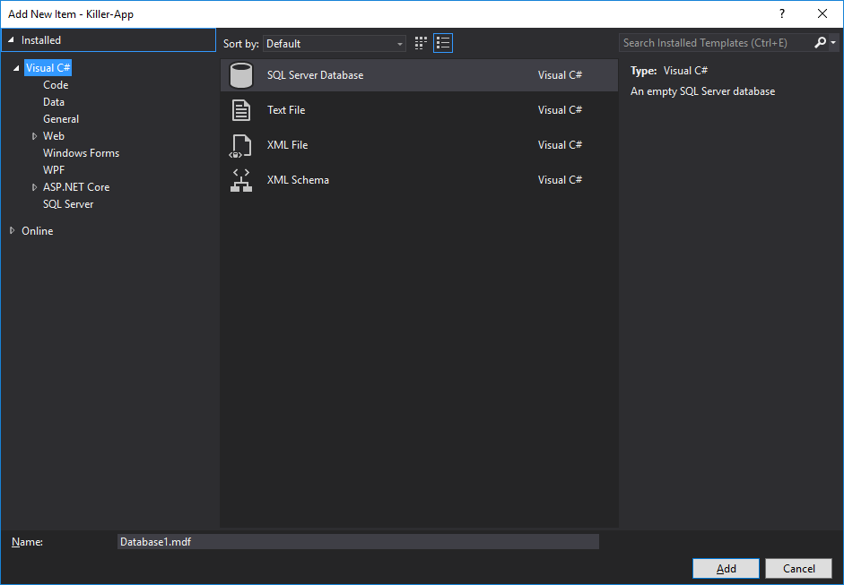 除了那些文件之外,我似乎什么也不能加。换标签没什么用。它们都是空的,但数据选项卡除外,该选项卡包含Server数据库、XML文件和XML。常规选项卡包含文本文件选项。