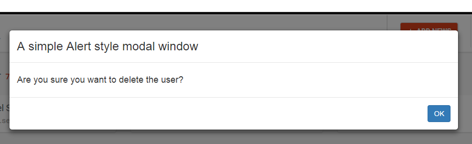 我试图删除一个用户,我希望有‘是’和‘否’按钮。这是模态的捷径。