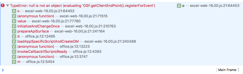 控制台错误不会给对话框带来任何不良影响。我们内部已经修好了。您可以忽略这个错误。您是否检查了office.context.ui.messageParent是空还是未定义?如果不是,则该对话框已成功初始化。如果是postMessage和IE的最新版本,请确保对话框首页域与任务窗格域相同。或者您可以使用其他浏览器进行尝试。2.如果是Win7 7&8&8.1和IE,那么您可以在其他浏览器中尝试查看messageParent api是否工作。我们已经做了一个代码修改来解决IE问题。它很快就会被部署来刺激。