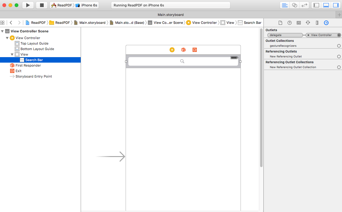 (2)故事板中的,ctrl+drag到viewController的搜索栏并选择委托。