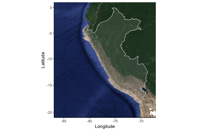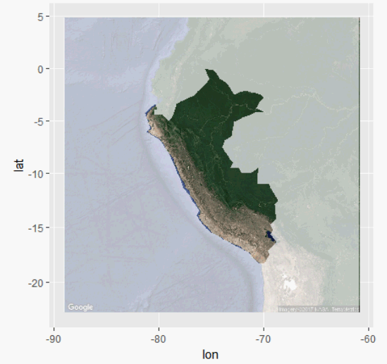 Peru <- get_map(location = "Peru", zoom = 5, maptype="satellite")