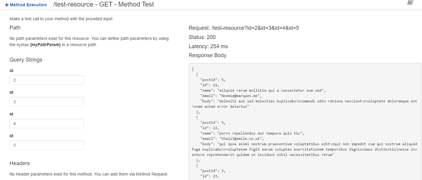 我能够提供多个“id”参数,但它们被映射到单个最新值中,在下面的屏幕上可以看到。