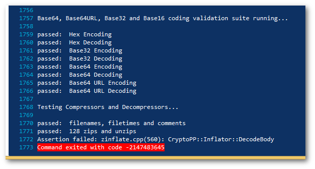 我们使用自定义断言来避免Posix崩溃程序被调试的行为。如下所示。如果assert触发并没有附加调试器,则Appveyor或操作系统似乎会杀死程序:
