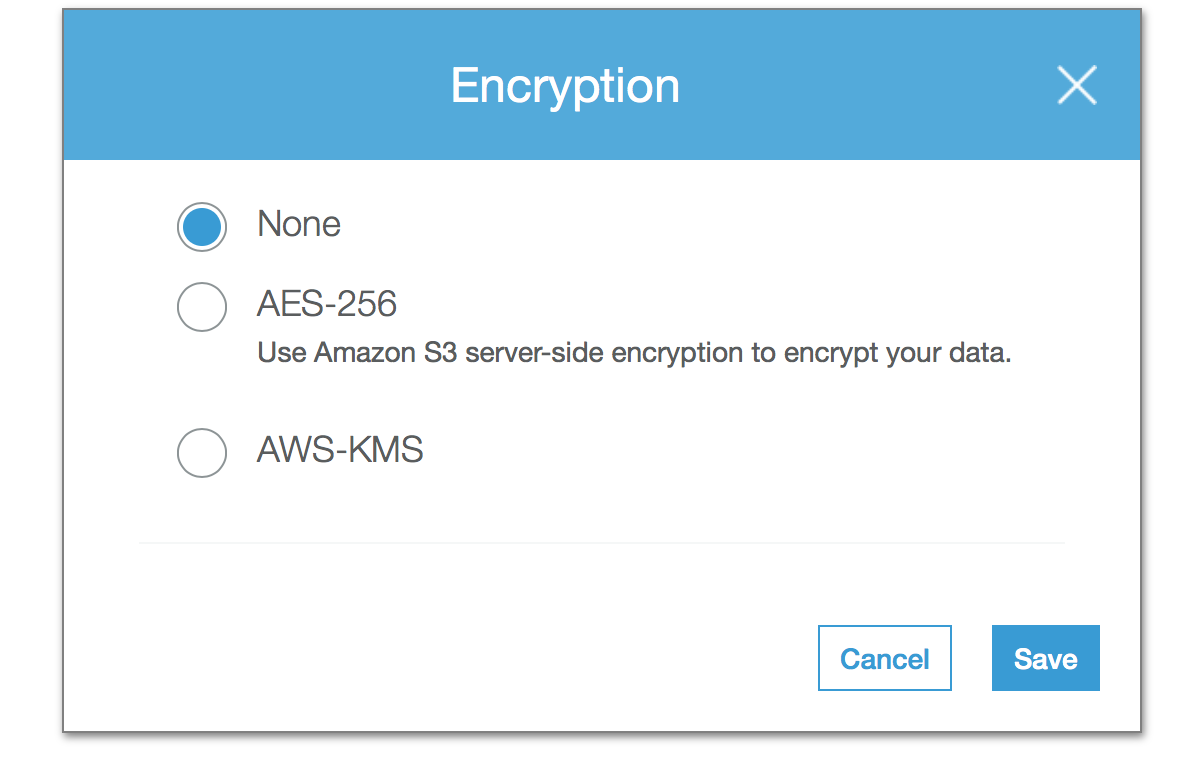 我正在通过aws code build执行安卓系统的构建。默认情况下,生成的apk文件是与server side encryption (aws-kms)一起应用的,我可以通过取消选择ASW-KMS单击s3桶中的下面所示,手动取消加密设置。
