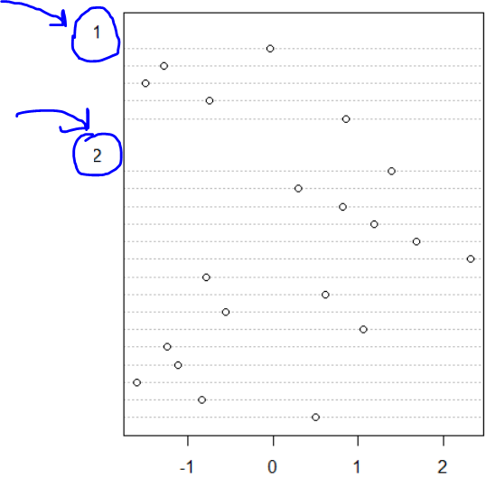 我想知道是否能在R中的标签(如下图中的蓝色圈)中找到dotchart的坐标(即x,y)?