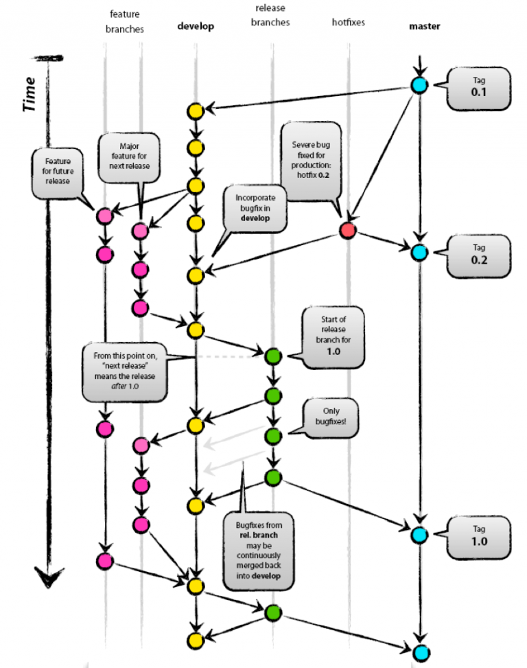 发布分支支持准备一个新的生产版本。它们允许在最后一刻点缀I‘s和交叉t’s,此外,它们还允许微小的错误修复和为发行版(版本号、构建日期等)准备元数据。通过在发布分支上完成所有这些工作,开发分支将被允许接收下一个大版本的特性。
