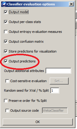 我使用了Weka来训练和测试一个文件(做出预测),但不能对API做同样的操作。我得到的错误是,火车和测试文件中有不同数量的属性。在GUI中,这可以通过检查“输出预测”来解决。