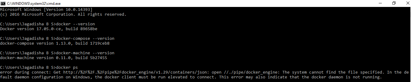 error during connect: Get http://%2F%2F.%2Fpipe%2Fdocker_engine/v1.29/containers/json: open //./pipe/docker_engine: The system cannot find the file specified. In the default daemon configuration on Windows, the docker client must be run elevated to connect. This error may also indicate that the docker daemon is not running.截图: