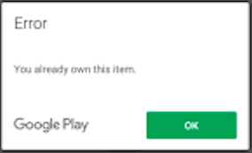 ok弹出窗口中单击No Internet Connection。回到我的申请。Error --> You already owned this item