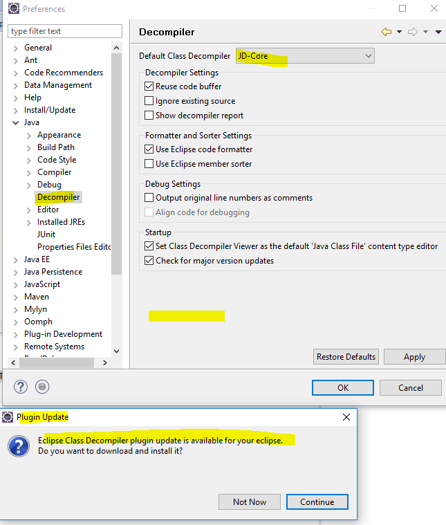 我有一个插件,一个反编译器,不断弹出一个警告说有一个更新的版本可用。每次启动Eclipse时,都会弹出这条消息。