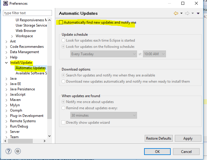 尽管我已经禁用了“自动更新”中的“自动更新”,但我还是关闭了“安装/更新/自动更新”。