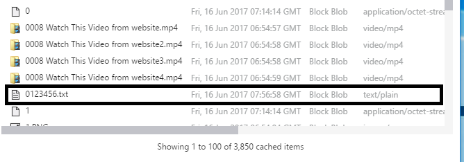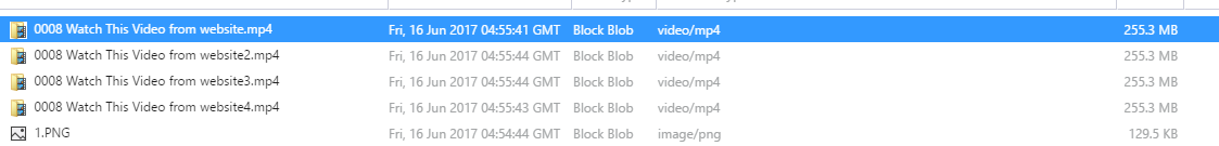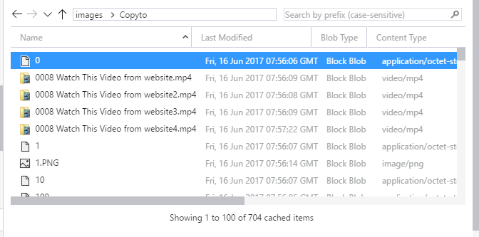 如果我们运行启动复制目录的方法,azure存储将首先创建0大小的文件,如下所示: