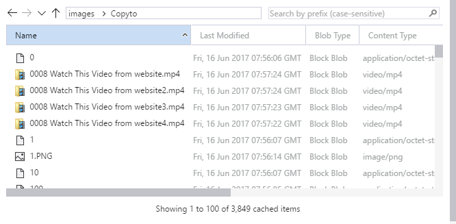 在get列表之后,它将生成一个标记,这是下一个blob搜索文件名。它将开始列出文件夹中的下一个文件名,然后重新开始复制。