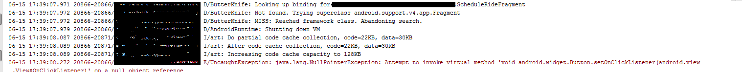 }但是它给了java.lang.NullPointerException(见日志)